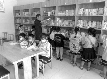 袁成敏每天都給來(lái)這里學(xué)習(xí)的小朋友們推薦圖書。 姚延亭 攝