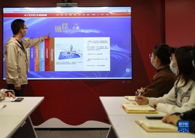 10月14日,“紀錄小康工程”數(shù)據(jù)庫工作人員在介紹“紀錄小康工程”數(shù)據(jù)庫。新華社記者 王楷焱 攝