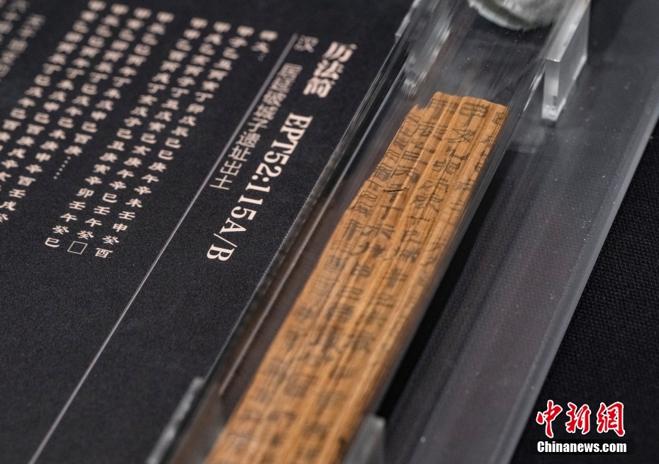 1月17日,“二十世紀(jì)初中國古文獻(xiàn)四大發(fā)現(xiàn)展”正在位于北京的國家典籍博物館內(nèi)展出。本次展覽分為“殷墟甲骨”“居延漢簡”“敦煌遺書”“明清檔案”四個專題,首次將分藏于各處的四大文獻(xiàn)薈萃一堂,集中多種類型的珍貴文物文獻(xiàn)共249種,382件,是目前為止“四大發(fā)現(xiàn)”文物最大規(guī)模的展覽。圖為“居延漢簡”展區(qū)中展示的一條“歷法簡”的真跡實物展品。 中新社記者 侯宇 攝