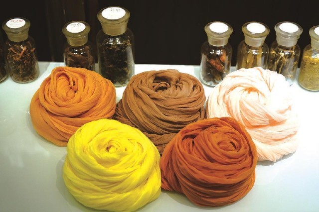而與大多數(shù)傳統(tǒng)色彩研究者不同的是,曾啟雄極為重視實(shí)驗(yàn)考證。作為一位技藝精湛的染色家,其論著里介紹傳統(tǒng)染色的文本內(nèi)容及圖片,都是他親歷親為、反復(fù)實(shí)驗(yàn)后的成果,這也是該書(shū)最為精彩之處。在染色實(shí)驗(yàn)過(guò)程中,除了復(fù)原了傳統(tǒng)顏色的本來(lái)面貌外,作者還做出如下貢獻(xiàn):首先,通過(guò)大量實(shí)驗(yàn)印證了古籍記載的真?zhèn)?,并糾正了其中一些不實(shí)之處。比如,他通過(guò)在柘木里添加明礬、高溫染色后的結(jié)果,顛覆了以往認(rèn)為唐代帝王穿用的“柘黃”袍服是暗淡赭黃色的普遍認(rèn)知,印證其應(yīng)為類似明清時(shí)代帝王使用的明黃色。其次,使用不少篇幅介紹了不同的染料、媒介物等因素對(duì)于染色效果等的制約作用。以石榴皮作為染材為例,當(dāng)它與不同媒染劑,如明礬、鐵等進(jìn)行染色時(shí),則會(huì)形成由黃色到黑褐色的不同顏色。即使采用相同的染法,因棉麻絲綢等介質(zhì)迥異,也會(huì)染出不同顏色等。最后,該書(shū)對(duì)于各種染料特點(diǎn)、工藝程序、顏色效果等的表述,較其他相關(guān)論著也更加纖悉無(wú)遺和引人入勝,如關(guān)于紫膠蟲(chóng)的染色工序的詳盡介紹等,讓讀者有一種身臨其境、意欲參與的感受。