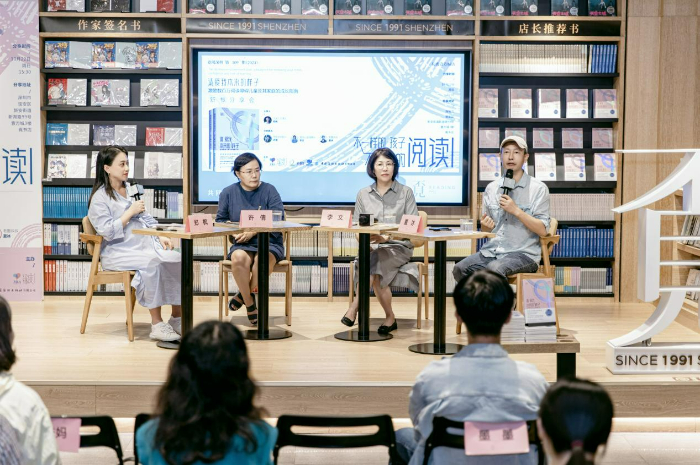 分享會上,閱讀公益組織“愛閱公益基金會”的李文、兒童有聲書品牌“老墨家族”的“墨叔叔”、學(xué)習(xí)困難關(guān)愛協(xié)會“學(xué)愛會”許倩、讀困家長社群“飛米力”(本書翻譯團(tuán)隊(duì))主理人鄭楓,四位嘉賓,帶著各自不同的成長和行業(yè)經(jīng)歷背景,圍繞“不一樣的孩子,不一樣的閱讀”的主題展開交流,從不同的角度表達(dá)了他們對于閱讀障礙的關(guān)切。