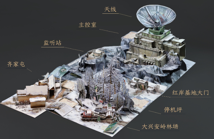 如果說(shuō)《三體》是關(guān)于宇宙最狂野的想象,那《三體立體書(shū) 紅岸基地》就是將這份想象轉(zhuǎn)化為了可觸摸、可視化的閱讀體驗(yàn)。這本書(shū)采用全景展開(kāi)的裝幀方式,還原從大興安嶺林場(chǎng)、紅岸基地、到齊家屯的整個(gè)地圖,全書(shū)展開(kāi)后近1.5平方米,小立體頁(yè)和豐富有趣的互動(dòng)機(jī)關(guān)則暗藏細(xì)節(jié),使故事結(jié)構(gòu)更為完整。為了確保立體書(shū)最終呈現(xiàn)出來(lái)的效果,在做立體紙藝設(shè)計(jì)的時(shí)候,施鎮(zhèn)宇挑戰(zhàn)立體紙藝結(jié)構(gòu)畫(huà)幅極限,創(chuàng)新性采用二段式結(jié)構(gòu),搭建出約0.5米高的紅岸基地巨型天線(xiàn),帶來(lái)震撼的閱讀體驗(yàn)。