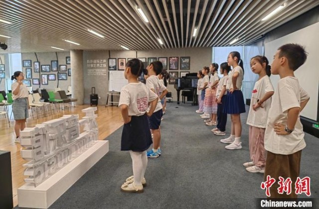寧波圖書(shū)館的“天一童藝”公益項(xiàng)目現(xiàn)場(chǎng),孩子們跟著老師學(xué)唱由《千字文》改編的歌曲。 中新網(wǎng)記者 應(yīng)妮 攝