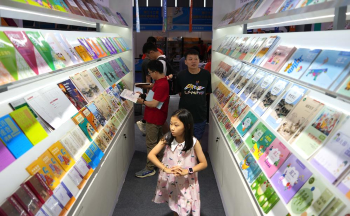 7月26日,在第三十二屆全國圖書交易博覽會上,讀者在挑選圖書。