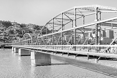 以百年時(shí)間看黃河,《黃河中國》彰顯黃河古文明之上崛起的現(xiàn)代文明。在書中我特意寫了三座百年黃河鐵橋,它們分別是蘭州黃河鐵橋、鄭州平漢鐵路黃河橋和濟(jì)南濼口黃河鐵路橋。一百年放置在歷史長(zhǎng)河里不算長(zhǎng),卻是一個(gè)較為合適的觀照近現(xiàn)代中國發(fā)展的時(shí)間點(diǎn)。從擺渡、繩渡到石橋、木橋、浮橋、鐵路橋、公路橋,橋梁建筑史的發(fā)展足以證明人類社會(huì)的進(jìn)步。黃河上最初修建鐵橋的歷史在晚清末年,正是中華民族處于內(nèi)憂外患之際,光緒二十六年(1900)清政府決定修建平漢黃河鐵路橋,這是黃河上的第一座鋼鐵建筑,然而在1938年抗戰(zhàn)烽火中,為阻擋日軍進(jìn)攻,被炸毀了,現(xiàn)在只剩下5孔橋墩。以5孔橋墩存在的黃河第一座鐵橋,象征著黃河上現(xiàn)代工業(yè)文明的興起與民族深深的精神創(chuàng)傷。如今80多年過去了,鄭州地段已經(jīng)修建了十余座黃河橋,每一座都很現(xiàn)代很漂亮。自新中國成立以來,黃河安瀾75年,從戰(zhàn)火紛飛到國泰民安,黃河是國家昌盛、民眾幸福的最好見證者。