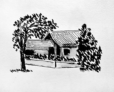 老槐樹(shù)旁的舊居 肖復(fù)興繪
