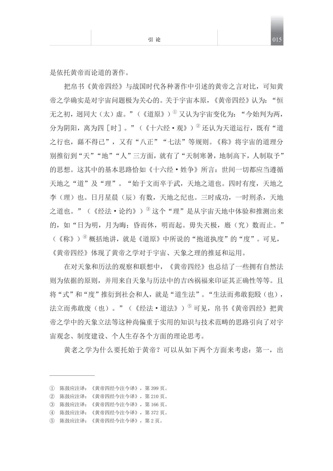《黃帝四經(jīng)》作為東周之前各朝修身治國的指導(dǎo)性經(jīng)典,其修身治世功用迄今依然具有極高的現(xiàn)實(shí)意義和指導(dǎo)價(jià)值。本書以《黃帝四經(jīng)》為研究起點(diǎn),重點(diǎn)探索黃老政治思想中的重要概念,并試圖從核心詞匯“道”“德”概念的演變及其相互作用來探究黃老學(xué)說的起源發(fā)展的學(xué)術(shù)邏輯,尤其從“德”含義的拓展與遷移去分析黃老哲學(xué)政治德性的建立,隨之引出黃老政治思想中的重要概念“道法”“刑名”“刑德”“因循”等,并希望由此描摹出黃老政治思想的特性。