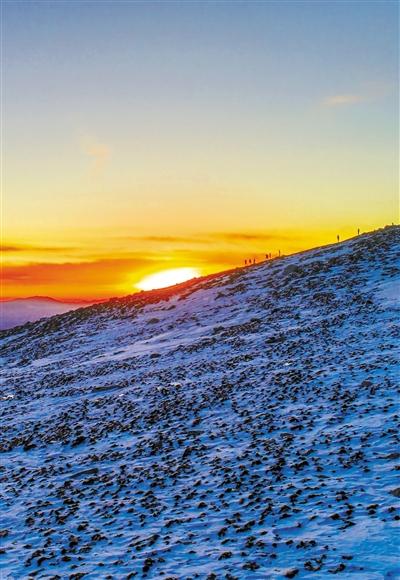 元旦當(dāng)日早上6時(shí)30分,記者乘坐景交車前往巴爾斯圣山核心景區(qū)觀看日出,在抵達(dá)海拔3900米后徒步上山迎接2020年第一縷陽(yáng)光??邕^(guò)及膝的雪,踏過(guò)堅(jiān)硬的碎石堆,溜過(guò)光滑的冰面,抵達(dá)了海拔4100米最佳觀賞日出點(diǎn),等待著新年第一縷陽(yáng)光刺破蒼穹、越過(guò)遠(yuǎn)處的雪山之巔照耀大地。7時(shí)50分左右,陽(yáng)光沖破云層,遠(yuǎn)處的雪山像是被鑲了一道金邊,此時(shí)只覺(jué)心靈與大山融為了一體,只有靜靜地等待。不知不覺(jué)中,陽(yáng)光逐漸刺眼起來(lái),這才意識(shí)到2020年第一抹陽(yáng)光,承載著令人希冀的美好愿望已來(lái)到我們身旁。 蘭州晨報(bào)/掌上蘭州記者 黃芃