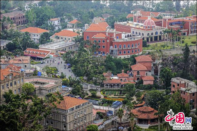 如果有這樣一座島嶼——遠(yuǎn)處是一方寧靜的藍(lán)天,近處是一片幽深的綠樹,藍(lán)與綠之間,是逶迤而去的清水紅磚……極目遠(yuǎn)眺,只見她濃淡相宜、遠(yuǎn)近相安,仿佛一幅肅穆祥和的印象派油畫;細(xì)細(xì)聆聽,似乎還有一支悠揚(yáng)的鋼琴曲,在伴隨海鷗與濤聲,不時(shí)從畫中飄來……