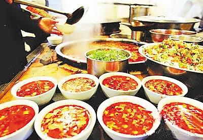 在晾面的時(shí)候,主婦開(kāi)始炒菜,做湯頭。做菜前,先要熟些新鮮的油潑辣子,在辣面中調(diào)入少許精鹽與調(diào)和粉,將熱好的胡麻油“嗞拉”一聲傾入辣子面中,香辣之味頓時(shí)充滿一室。然后開(kāi)始燴菜做湯頭。只見(jiàn)主婦有條不紊地將切好的菜丁逐一擱進(jìn)油鍋里,反復(fù)翻炒,適時(shí)放入大香、桂皮、草果、生姜、花椒等制成的混合調(diào)料與精鹽,等香味炒出來(lái)了,便漩入提前燒好的開(kāi)水,火關(guān)小,讓其慢熟。