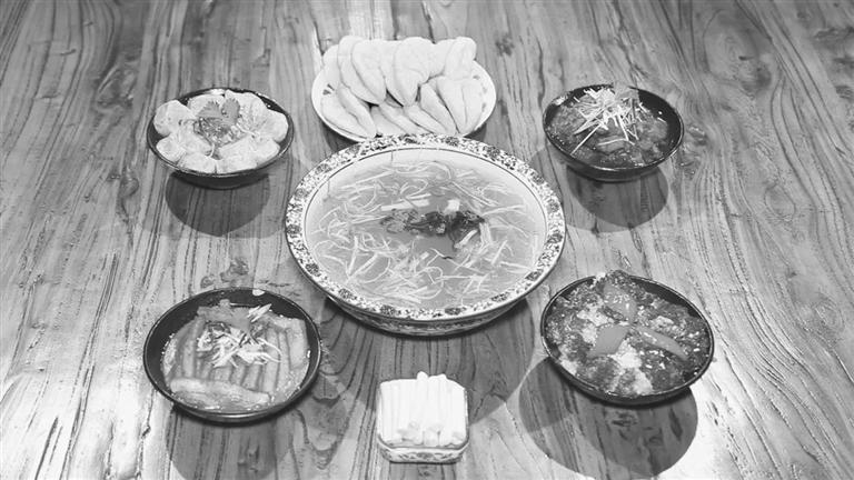 不算飲茶、干果、迎客餛飩、涼菜的預(yù)熱環(huán)節(jié),“十三花”從正席的跑菜——八盤子熱炒到座菜——四碗一鍋子,共有十三道菜,一年十二個月,每月一道菜,十二道菜還多出一道菜,寓意年年有余。八道跑菜和五道座菜,加在一起才能稱之為“十三花”宴席的正席。