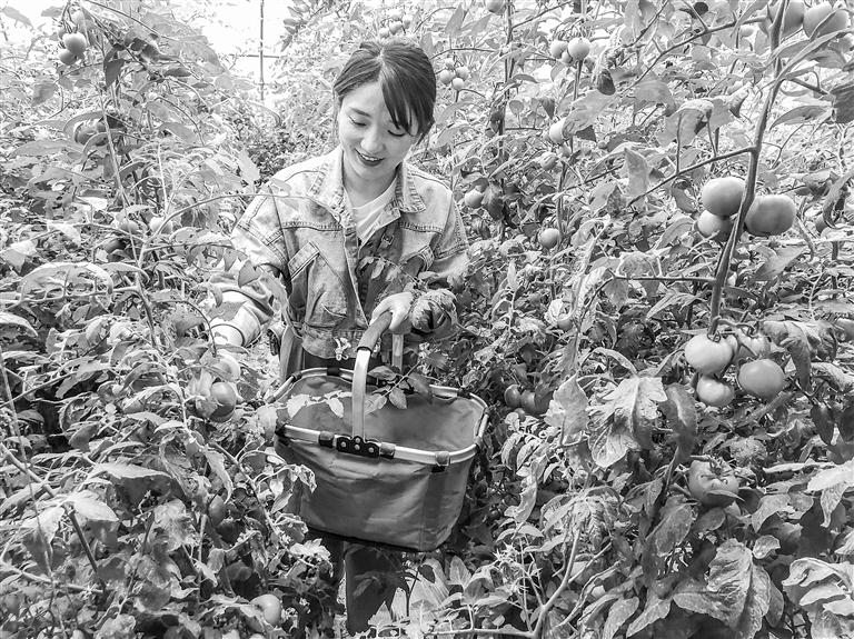 游客正在采摘圣女果。首席記者 田蹊 攝