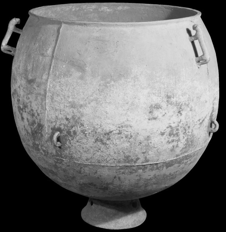 這件青銅鍑的鑄造帶著游牧民族的特點,先分后合, 分塊鑄造然后焊接而成。這是一件罕見的秦末漢初匈奴鑄造的大型青銅鍑,其時間大概在戰(zhàn)國到漢初。