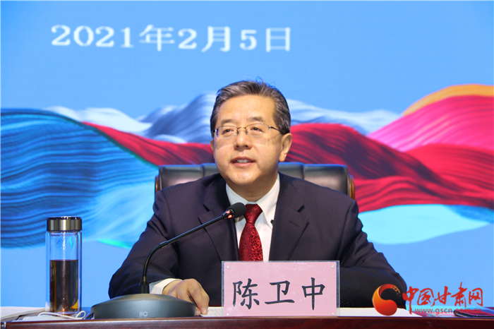 中國甘肅網2月5日訊 (本網記者 張?zhí)m琴 文/圖)2月5日上午,2021年全省文化和旅游局長視頻會議在省會蘭州召開。與往年不同的是,這次會議貫徹落實省委、省政府的要求,蘭州以外的13個市州以視頻會議形式參會。整個會議簡潔、務實、高效,旨在學習貫徹全國宣傳部長會議、全國文化和旅游廳局長會議、省委十三屆十三次全會暨省委經濟工作會議、省“兩會”和全省宣傳部長會議精神,總結2020年主要工作,安排2021年重點任務。甘肅省委宣傳部副部長,省文旅廳黨組書記、廳長陳衛(wèi)中在會上講話,向全省“文旅鐵軍”發(fā)起號召,“干字當頭”的決心引發(fā)全場熱烈反響。