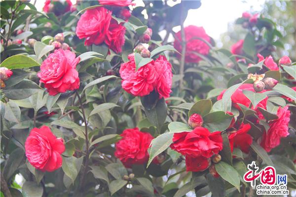 一輪艷陽照四方,一席春風綠千山。山茶花是中國傳統(tǒng)名花,也是世界名花之一。2月21日,朋友相約,從縣城出發(fā),約8公里就進入九龍生態(tài)園,姿態(tài)各異的山茶花已進入盛花期,樹姿虬勁優(yōu)美,綠葉四季不凋,一朵一朵的茶花大如牡丹,燦如云霞,風姿綽約,耀眼生輝!植株形姿優(yōu)美,葉濃綠而光澤,花形艷麗繽紛,美艷了。有的鮮紅如火、有的嬌羞染粉、有的晶瑩潔白……滿園茶花勝景。不經意間清風吹過,暗香徐來,朵朵花兒隨風舞。陽光穿透葉子的縫隙,落在花間小道上,花香彌漫整個鼻腔,放低自己,品味花香,眼里有花、心里有花,人生就會像花一樣美麗。