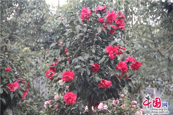 云南羅平小寨山茶花爭奇斗艷 生態(tài)園百花齊放