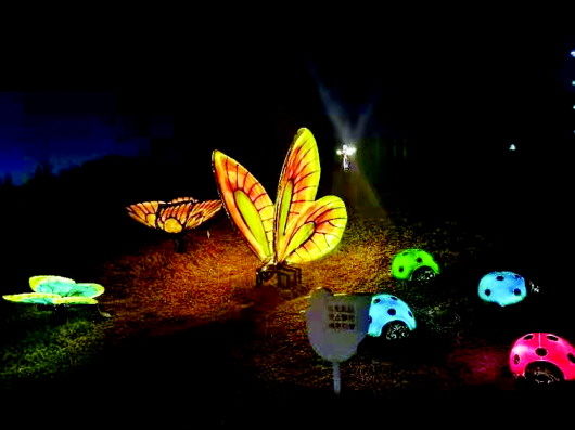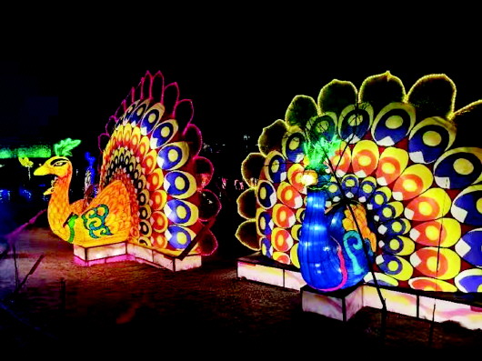 花燈競(jìng)起,五夜齊開(kāi)。連日來(lái),市區(qū)金嶺公園夜晚流光溢彩,一組組色彩艷麗、造型精美、構(gòu)思巧妙、寓意吉祥的大型花燈將公園裝扮得五彩繽紛、喜氣洋洋。燈的海洋,夜的霓裳,造型各異的花燈惹人注目,吸引了眾多市民前來(lái)觀賞,也給即將到來(lái)的元宵佳節(jié)帶來(lái)濃濃的喜慶氣氛。