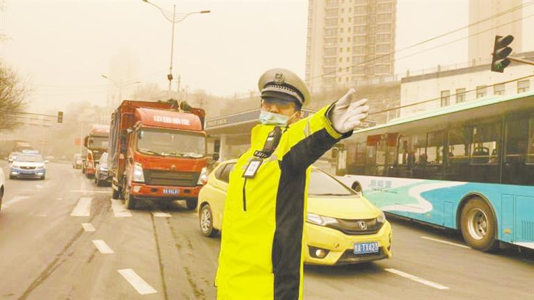 蘭州交警指揮疏導交通。龔家灣交警大隊供圖