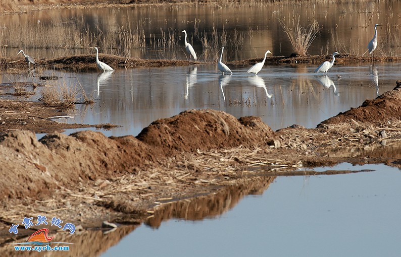 初春時節(jié),山丹縣祁家店水庫濕地成百上千的天鵝、白鷺、灰鶴、野鴨等幾十種鳥類成群結(jié)對,引頸高歌,或追逐覓食,或結(jié)伴翱翔,成為一道亮麗的風(fēng)景線。