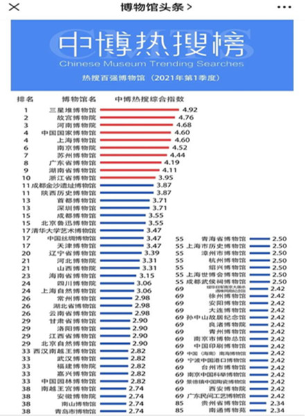 原標題:一季度全國博物館熱搜榜發(fā)布 三星堆首登榜首