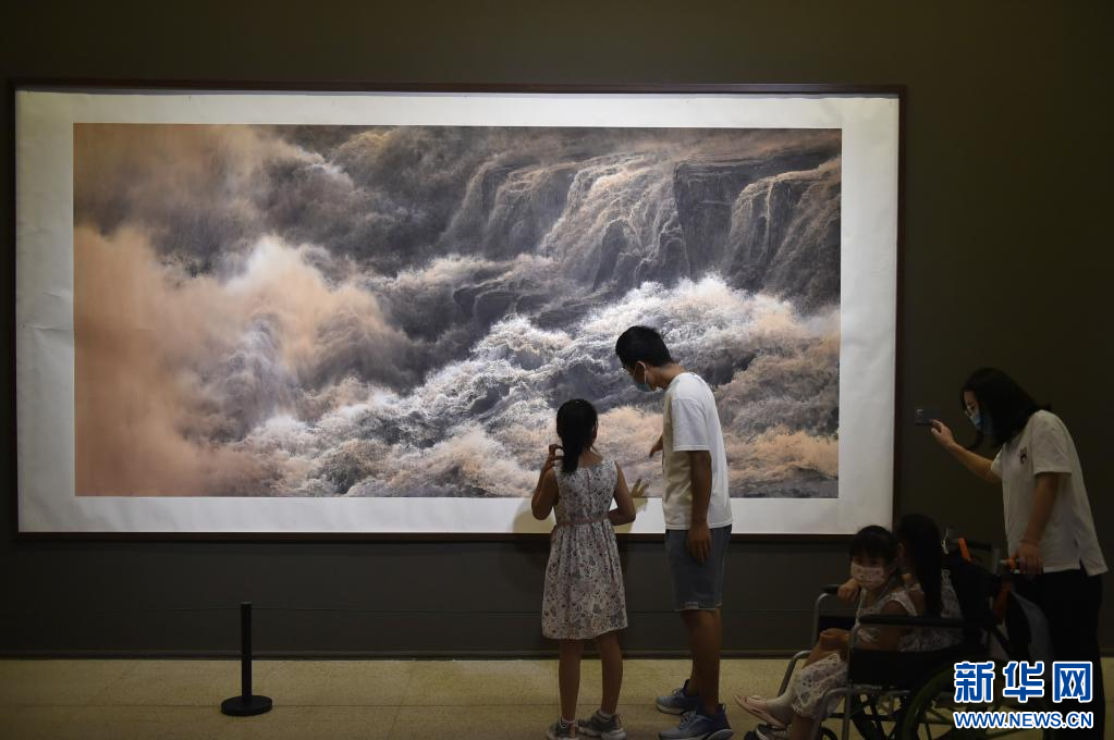 8月14日,觀眾在中國美術(shù)館參觀展出作品《大河史詩》。 新華社記者 魯鵬 攝