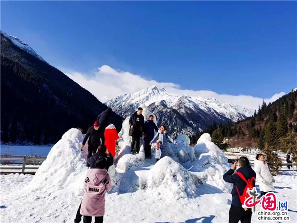 在達(dá)古湖和情人灘,攜手親密戀人共同度過(guò)了浪漫冬日時(shí)光;與朋友和家人,在洛格斯神山腳下,許下了新年最美好的期許;再去山腳逗弄藏酋猴,親人又可愛,讓不少游客連連喊道:“好可愛的猴子!”