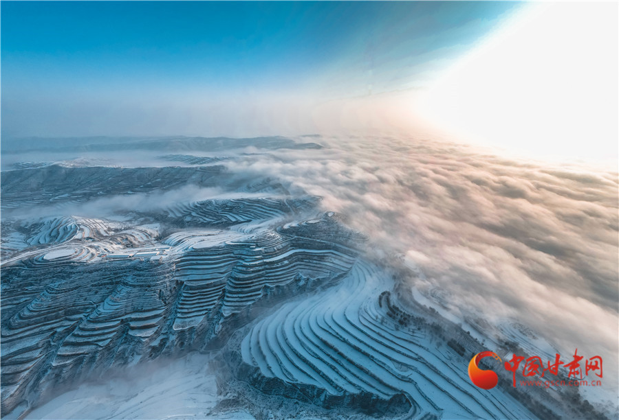 【隴拍客】蘭州榆中:穿越云海看梯田 雪后家園似仙境