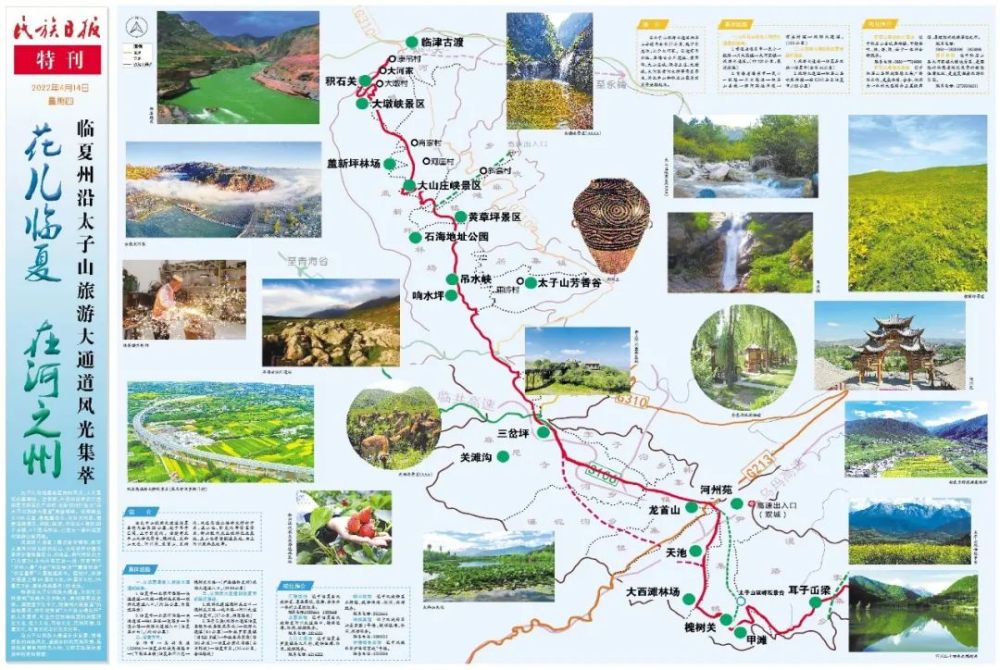 暢游沿太子山旅游大通道,不僅可以欣賞到“雙峽中分天際開,黃河擁雪排空來。奔流直下五千丈,怒濤終古轟春雷”的自然景觀,亦可欣賞到“八千游女唱牡丹”的人文景觀,可全方位領(lǐng)略臨夏的關(guān)隘歷史文化、花兒文化、民俗文化、民族風(fēng)情、非遺文化、飲食文化及紅色文化等。