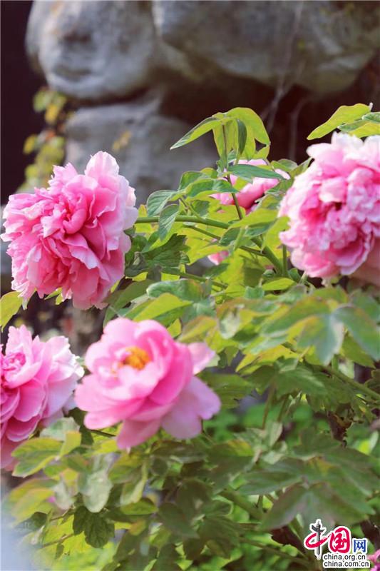 “國色鮮明舒嫩臉,仙冠重疊剪紅云”。北宋范純?nèi)室?ldquo;仙冠”吐露牡丹之絕艷,即是春日的機緣促成的繁華與熱烈。重瓣牡丹更是醉馨自然,光灑在其上如透亮的粉晶般耀眼,翠綠有心添一抹“怒”放的生機,無論深紅淺紅俱是春日的盛情。