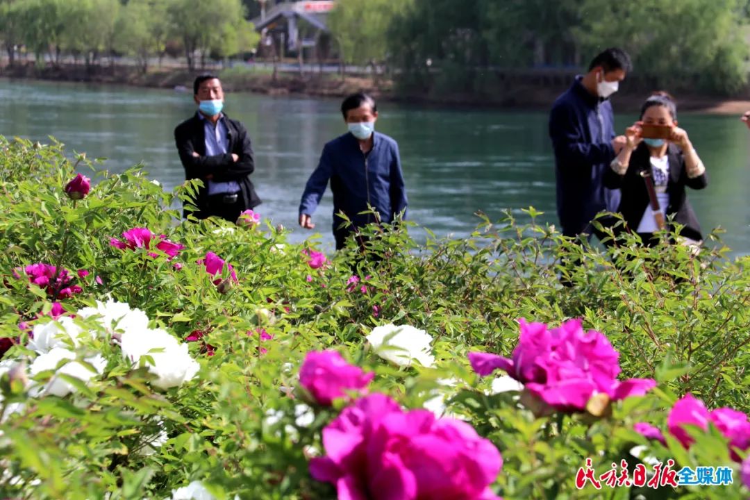 芳菲四月,臨夏各地觀賞性花卉陸續(xù)進(jìn)入盛花期。4月24日,在永靖縣城南濱河路,數(shù)千株牡丹競(jìng)相綻放,紫的、白的、紅的……婀娜多姿的各色牡丹花香四溢,吸引了大批游客前來(lái)觀花賞景。