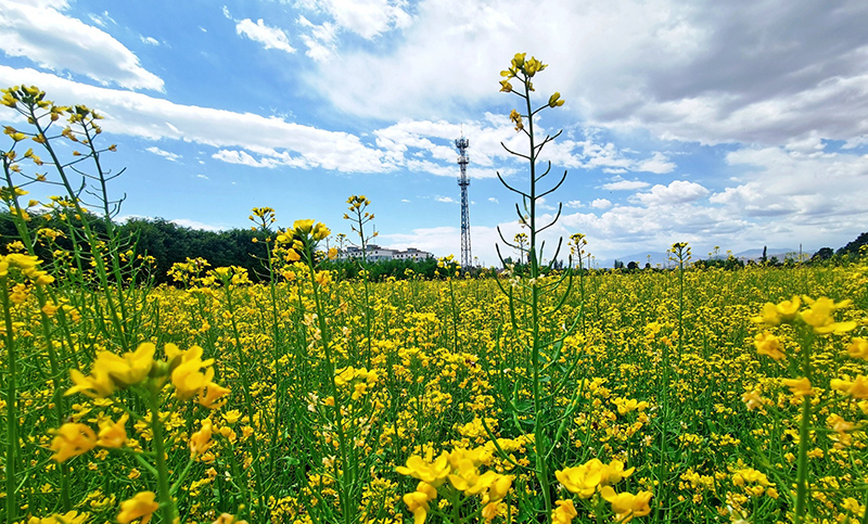 以大地為布,金黃的油菜花開滿鄉(xiāng)間,與鄉(xiāng)村民居交相輝映,構成一幅美麗的鄉(xiāng)村畫卷,也開成了鄉(xiāng)村振興的“致富花”。去年,沙河鎮(zhèn)西寨村、五三村依托“一戶一塊田”高標準農田建設后的便利條件,大力調整產業(yè)結構,積極引進專業(yè)合作社在本村建立蔬菜種植基地。今年,沙河鎮(zhèn)種植油菜300多畝,從5月中旬開始,油菜花便陸續(xù)開放,現(xiàn)在已經進入全盛時期。