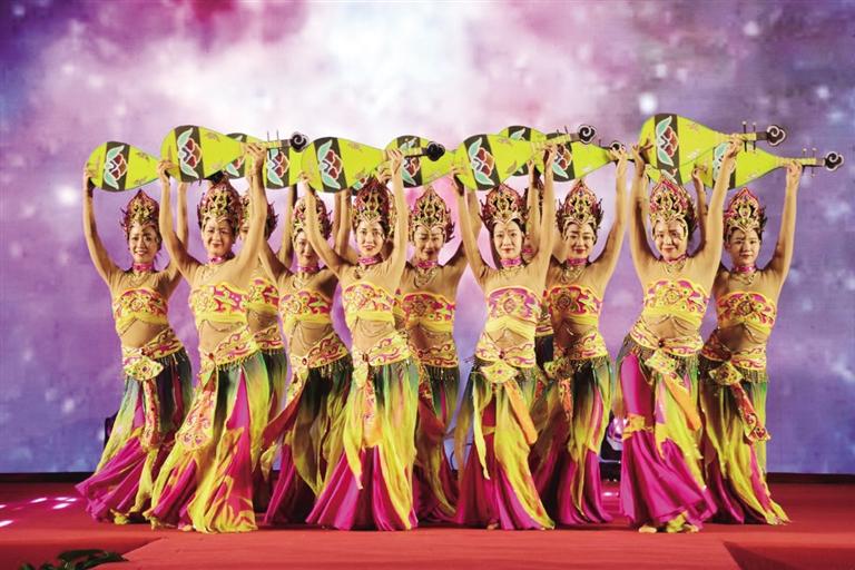 晚上8點,“博物館之夜”主題演出在老兵合唱團帶來的大合唱《領航》中正式拉開帷幕?;趾氪髿獾那榫拔璧浮稄堯q出塞》、充滿年輕活力的《追夢人》、曼妙婀娜的《敦煌樂舞》……一個個精彩的節(jié)目,一陣陣熱烈的歡呼與掌聲,臺上臺下情景交融,共同完成了這場流光溢彩的文藝盛宴。