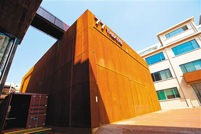沿著園區(qū)里迂回旋轉(zhuǎn)的鋼梯來到樓頂,眼前豁然開朗——與園區(qū)一街之隔有中國美術(shù)館、三聯(lián)書店,向西是北大紅樓舊址,向南是北京人民藝術(shù)劇院,向北則是中央戲劇學(xué)院。“我們?cè)谡{(diào)研中發(fā)現(xiàn),周邊戲劇、影視資源非常豐富,于是考慮將園區(qū)定位與東城區(qū)推進(jìn)‘戲劇之城’建設(shè)發(fā)展的方向相契合。”77文創(chuàng)園運(yùn)營方、東方道樸公司總經(jīng)理李明說。