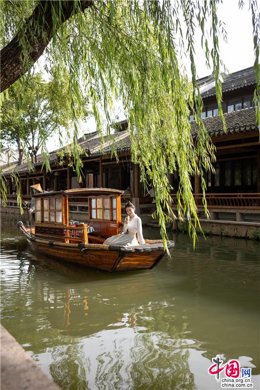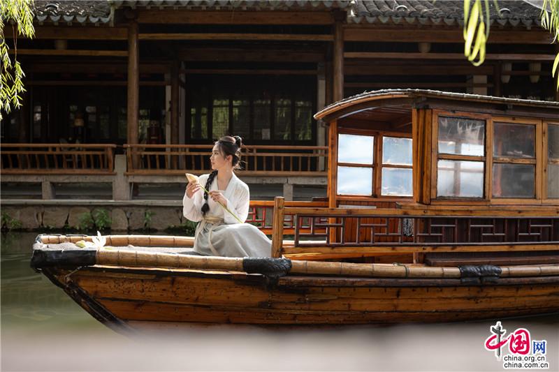 《夢(mèng)華錄》迎來結(jié)局,“顧盼生輝”的故事告一段落,可心里頭對(duì)宋時(shí)風(fēng)雅的向往卻怎么也按捺不住。周莊這座江南小鎮(zhèn),從北宋至今,已有千年,宋的繁華它曾親歷,朝代更迭它亦目送。大步闖進(jìn)古鎮(zhèn)里的人間,便用歲月沖泡悠悠茶香,游船上,搖櫓蕩開了時(shí)光。