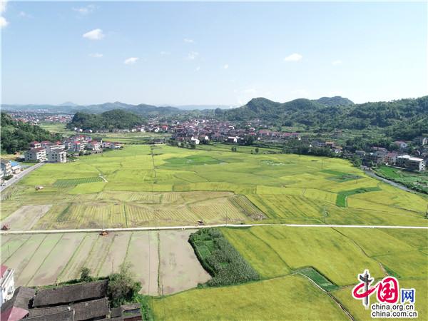 湖南新邵:早稻進(jìn)入全面收割階段 田園如詩如畫