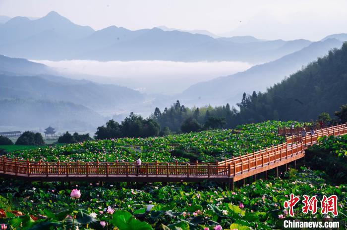 7月16日,“為荷而來”第七屆中國建蓮文化旅游節(jié)在三明市建寧縣濉溪鎮(zhèn)謝馬蘇梯田蓮海舉行。在梯田蓮海中放眼望去,層層疊疊的荷葉鋪滿湖面,或美麗綻放,或含苞待放。粉白淡紅的花瓣在陽光的照耀下格外嬌艷美麗。
