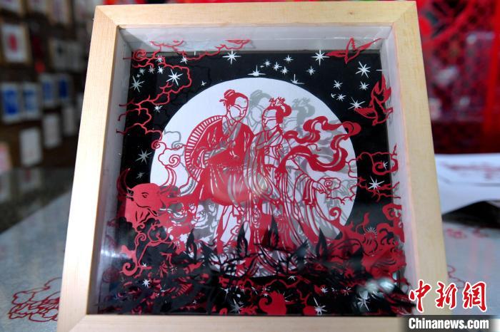 8月4日,是中國傳統(tǒng)節(jié)日七夕節(jié)。河北省衡水市阜城縣剪紙藝人尤金水創(chuàng)作了《牛郎》《織女》《鵲橋相會》三幅“七夕”剪紙作品,傳遞千年浪漫情。據(jù)介紹,作品采用阜城剪紙陽刻的手法,裝裱后利用立體投影的方式,可以把畫面投影到“月亮”上,既浪漫又神奇。