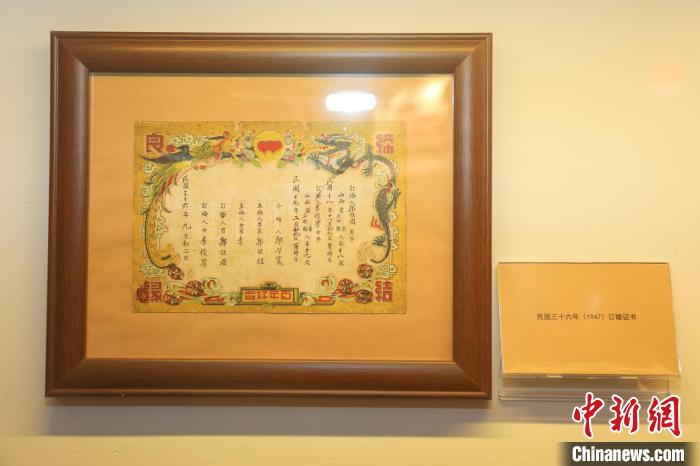 圖為博物館展出的民國(guó)時(shí)期的訂婚證書?!⒘?nbsp;攝