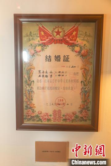 圖為博物館展出的建國(guó)初期的結(jié)婚證?!⒘?nbsp;攝