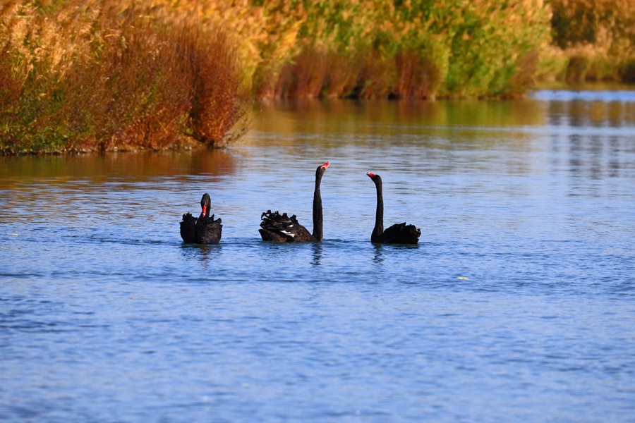 人民網(wǎng)蘭州10月13日電 (記者王文嘉)金秋十月好光景,位于祁連山下的張掖國家濕地公園秋色正濃,成群的天鵝聚集在一起游弋嬉戲、歡騰跳躍,舞出了濕地如畫的秋天,成為了一道靚麗的風(fēng)景線。