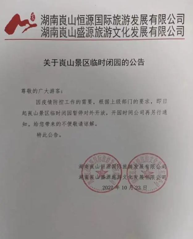 湖南:崀山旅游區(qū)宣布臨時(shí)閉園 暫停對外開放