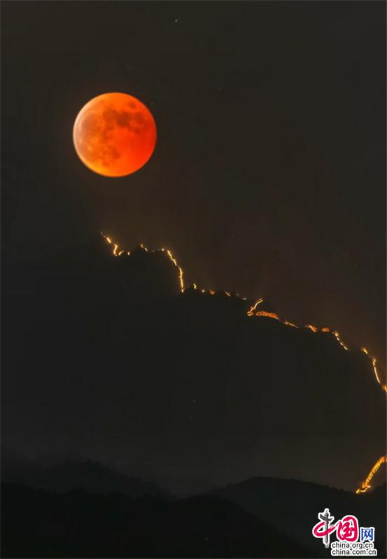 【點(diǎn)睛】11月8日晚,2022年天文奇觀——月全食天象現(xiàn)身。初冬的金山嶺長城,顏值依舊是巔峰,那一輪紅月亮,月全食(紅月亮)天象,驚艷了天上人間。