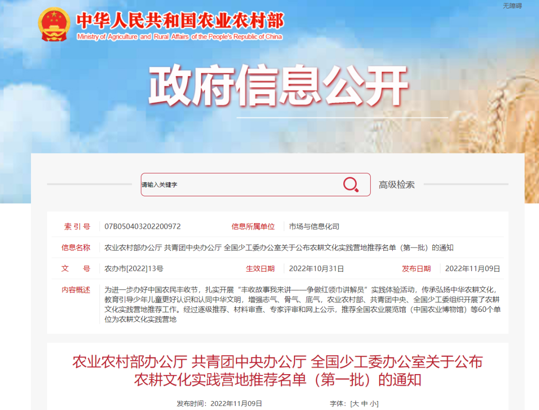 22-11-14 10:31 來源:農(nóng)業(yè)農(nóng)村部網(wǎng)站 編輯:劉姍
