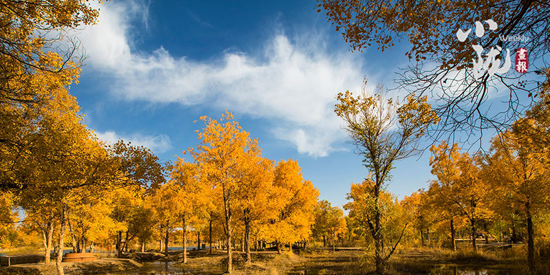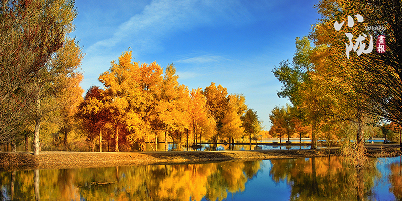 秋風(fēng)起時(shí),一樹(shù)金黃在湛藍(lán)的天空下連綿不絕,映著湖面,和流云飄逸的藍(lán)天一起,綻放成一幅壯麗的圖景。