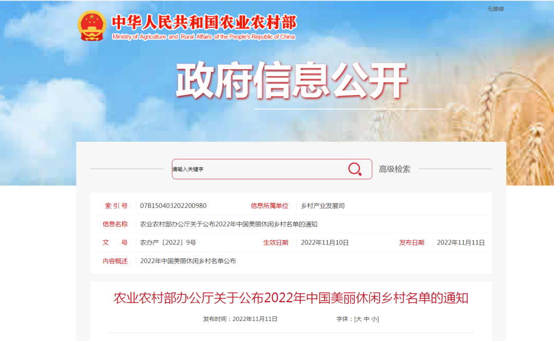 農業(yè)農村部14日發(fā)布,為拓展農業(yè)多種功能,促進鄉(xiāng)村產(chǎn)業(yè)高質量發(fā)展,農業(yè)農村部開展了2022年中國美麗休閑鄉(xiāng)村推介,貫通產(chǎn)加銷,融合農文旅,持續(xù)推進農村一、二、三產(chǎn)業(yè)融合發(fā)展。