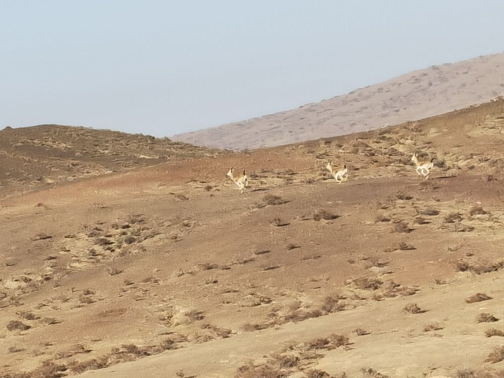 鵝喉羚是國家二級保護(hù)動物,棲息在荒漠、半荒漠區(qū)。“它們身姿輕盈,時(shí)而駐足遠(yuǎn)眺,時(shí)而結(jié)隊(duì)而行,相互追逐覓食。”甘肅民勤連古城國家級自然保護(hù)區(qū)管護(hù)中心南湖自然保護(hù)站站長薛斌瑞說:“鵝喉羚生性警覺,為了避免驚擾,我們只能采取遠(yuǎn)距離拍攝。”