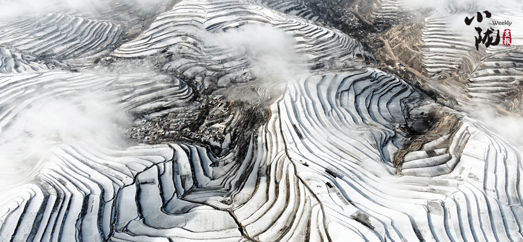 晨間的空氣因落雪更加清新,就像這漫山的雪,美不勝收,沁人心脾;遠(yuǎn)處茫茫青山,近處點(diǎn)點(diǎn)村落,梯田曲線蜿蜒綿長,展現(xiàn)著宕昌獨(dú)特的美。