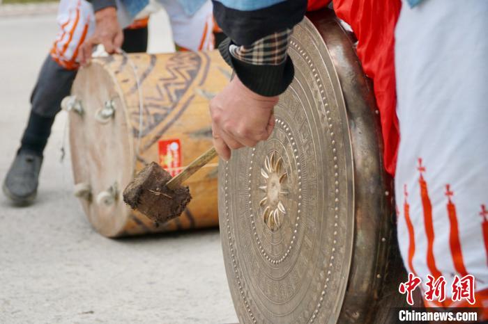 圖為白褲瑤居民正在敲擊銅鼓。韋國(guó)政 攝