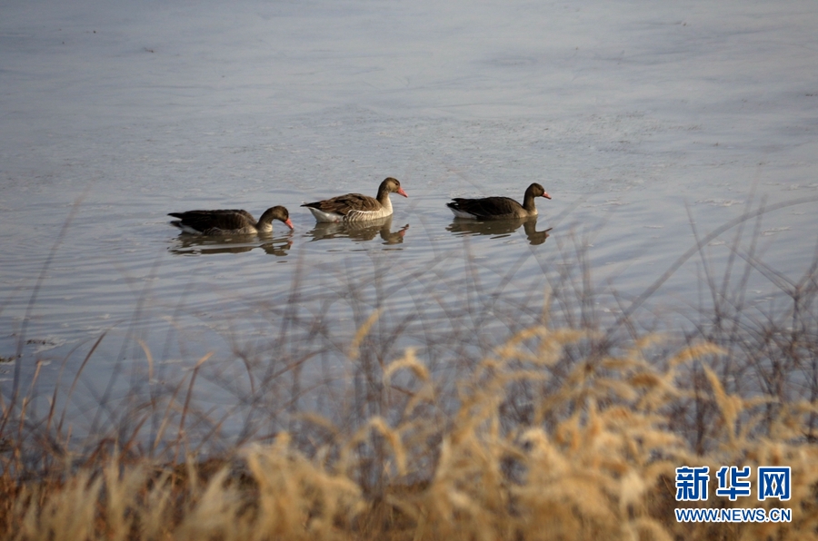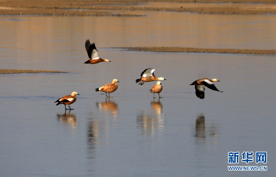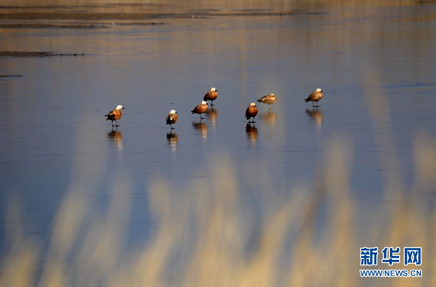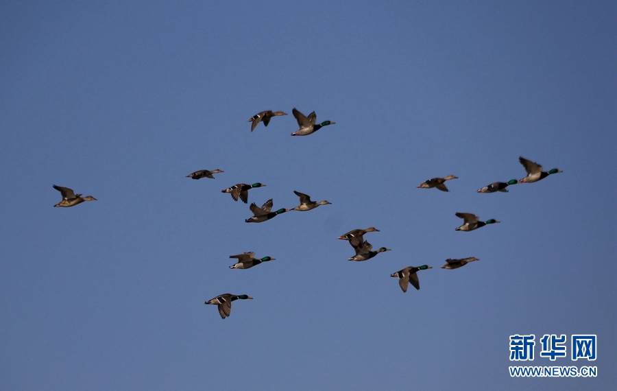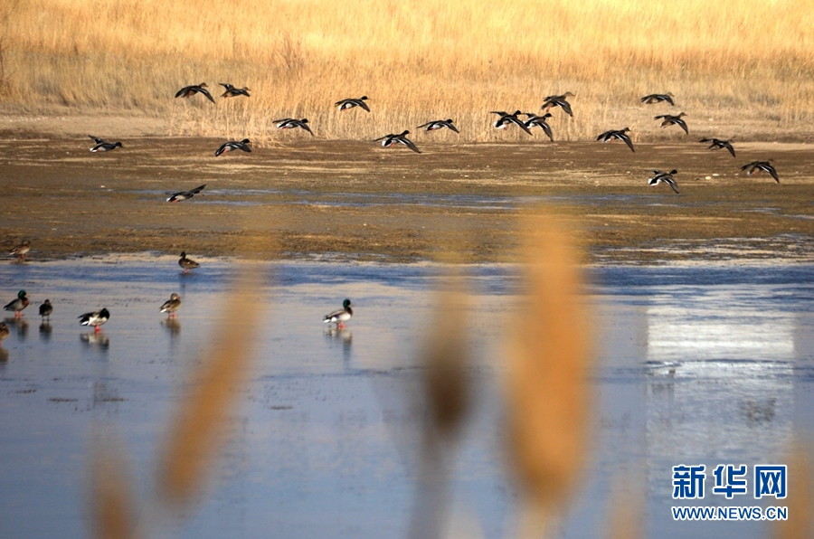 初冬時(shí)節(jié),位于鳴沙山下的甘肅省敦煌市黨河濕地,白鷺、綠頭鴨、赤麻鴨、灰雁等候鳥(niǎo)在這里棲息、飛翔、覓食,構(gòu)成了一幅和諧美麗的生態(tài)畫(huà)卷。