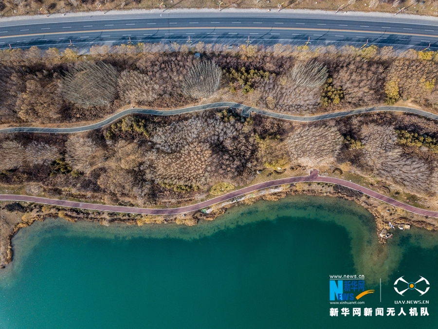 這是11月21日拍攝的甘肅省張掖市甘州區(qū)蘆水灣風光(無人機拍攝)。新華網(wǎng)發(fā) (成學磊 攝)